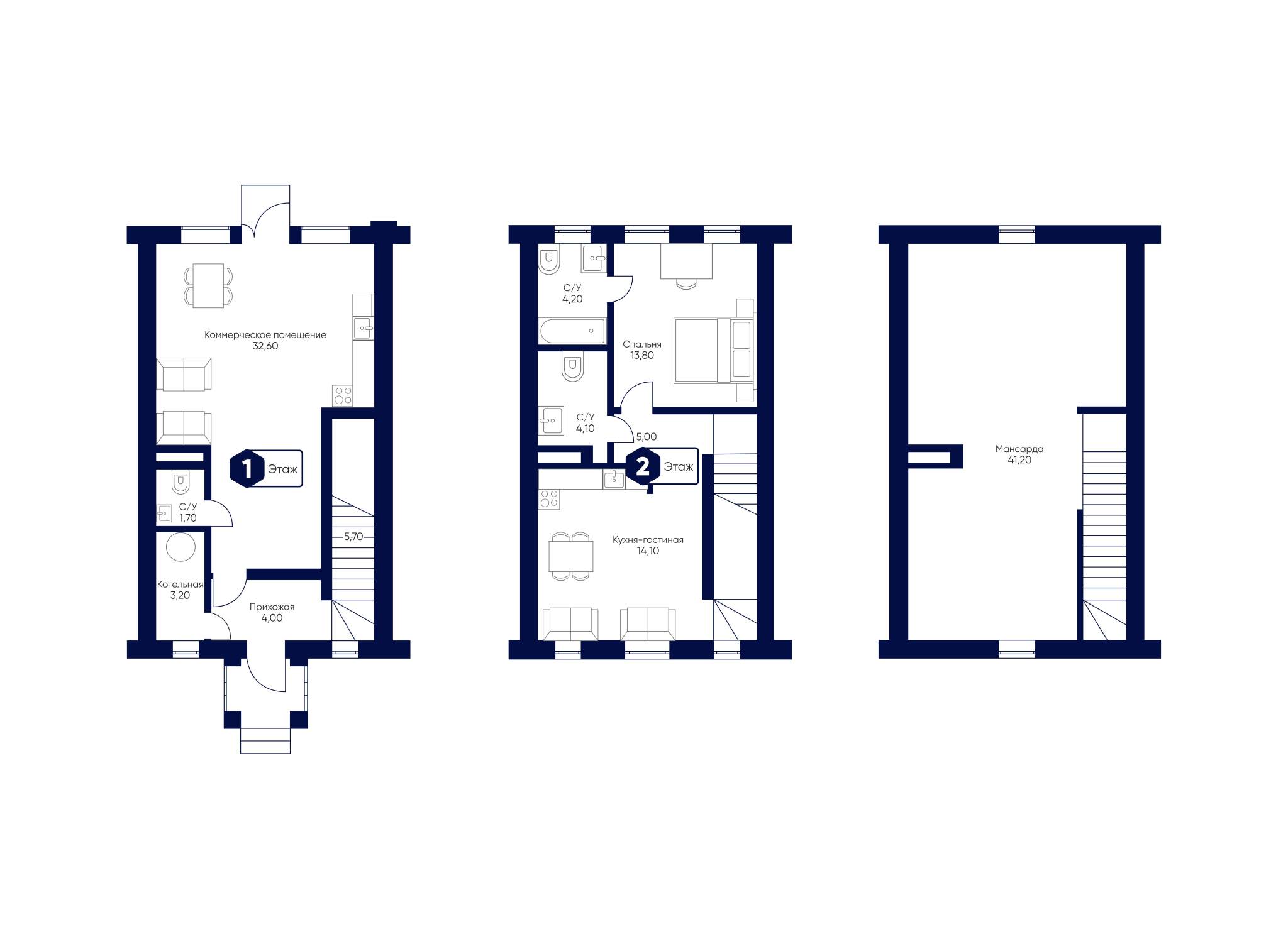 - Мансарда: 41.2 м